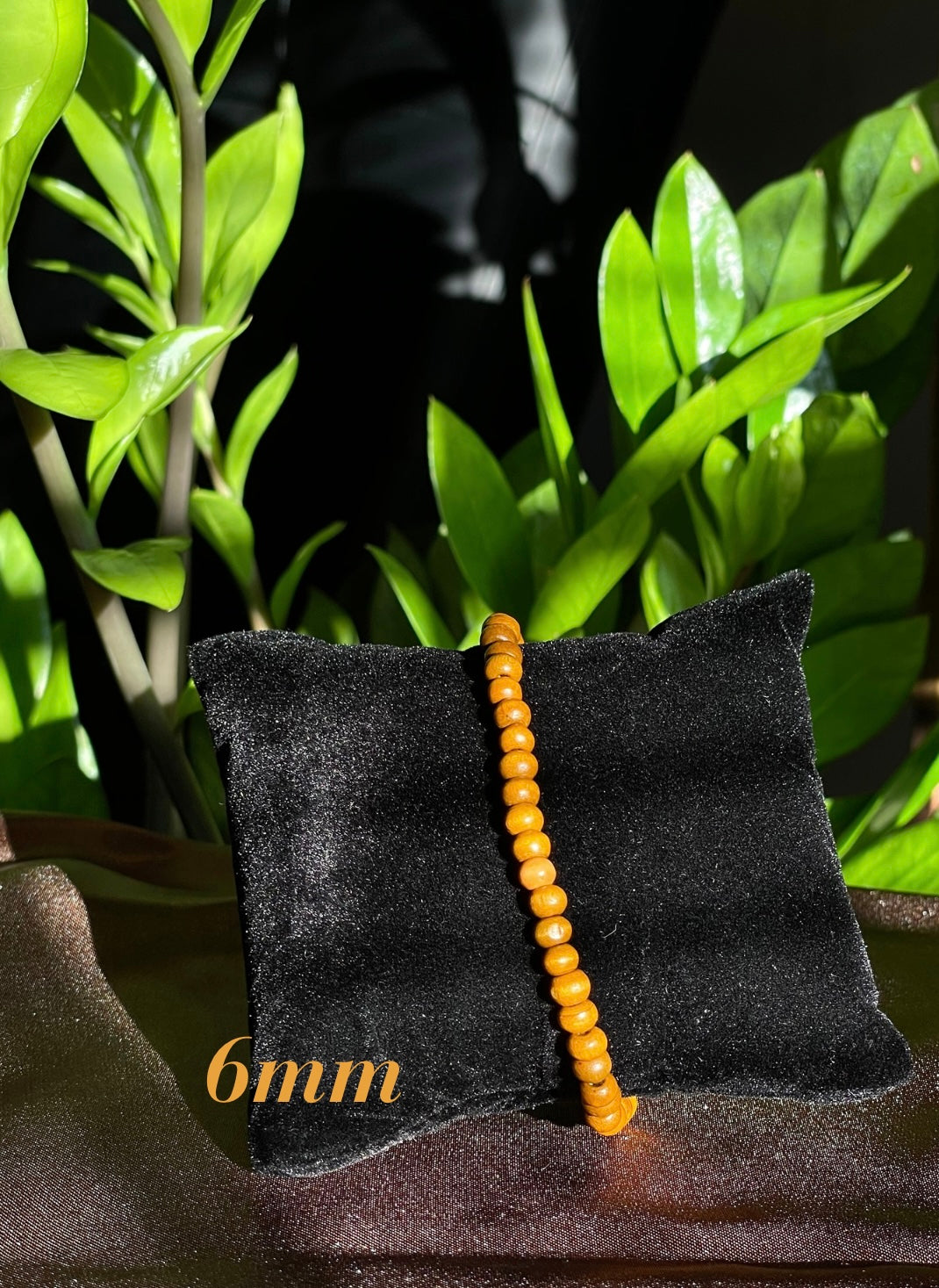 6mm Brown Wooden beads strung together by stretch cord for easy accessibility. Lightweight but also very sturdy.